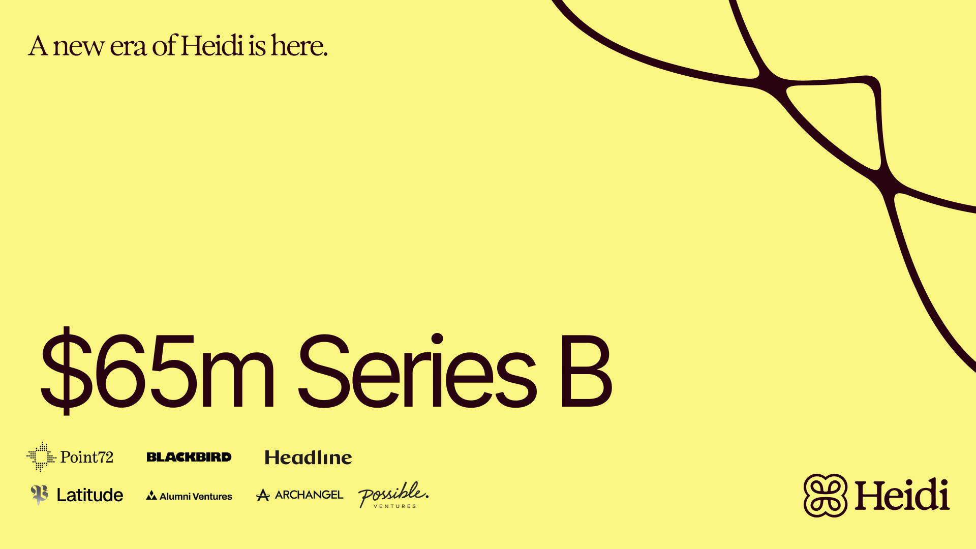 Heidi, the fast-growing healthcare AI company, today announced the closing of a $65 million Series B funding round, led by Point72 Private Investments with participation from continuing investors Blackbird, Headline, and Latitude, the growth fund of Phoenix Court. This round values Heidi at $465 million and brings total funding to nearly $100 million.